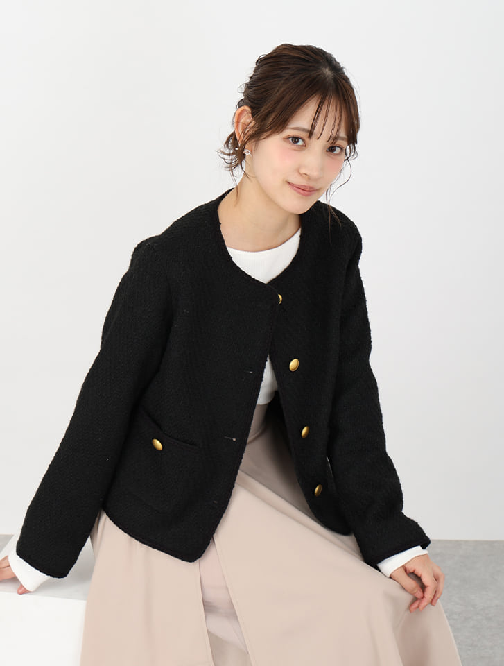 | メーカー | リボンツイードジャケット☆ブラック 再販】ブラックツイードショートジャケット |